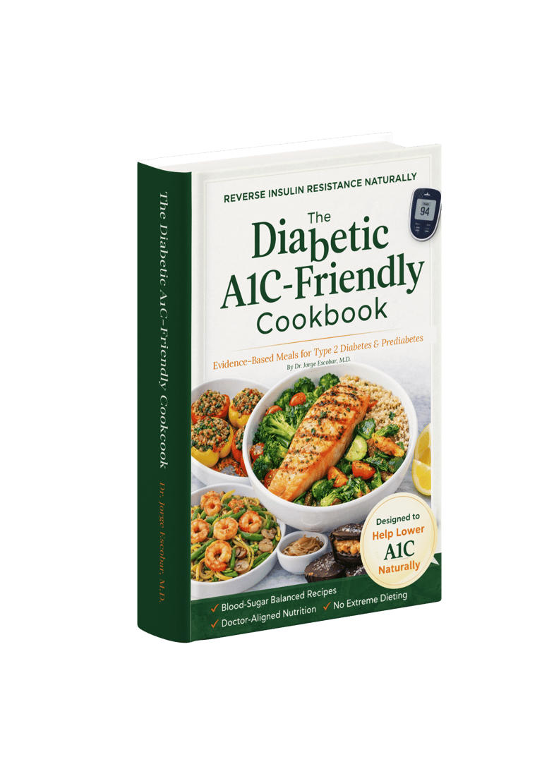 Two evidence-based ebooks by Dr. Jorge Escobar, M.D. — built on real clinical science to lower your A1C, control blood sugar, and lose body fat through food. No extreme diets. No guesswork.